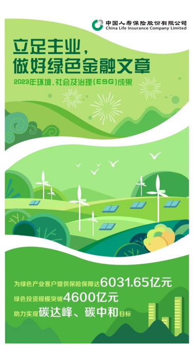 為滿足社會(huì)經(jīng)濟(jì)綠色轉(zhuǎn)型對(duì)于金融服務(wù)的需要,中國(guó)人壽壽險(xiǎn)公司持續(xù)釋放綠色金融效能,為綠色經(jīng)濟(jì)注入金融“活水”,助推相關(guān)產(chǎn)業(yè)高質(zhì)量發(fā)展。聚焦保險(xiǎn)住業(yè)務(wù),該公司2023年為綠色產(chǎn)業(yè)客戶提供達(dá)6031.65 億元保險(xiǎn)保障。同時(shí),不斷完善 ESG/綠色投資體系建設(shè),該公司對(duì)接國(guó)際通行ESG投資原則,構(gòu)建完善了公司綠色金融管理體系,截至2023年底,綠色投資規(guī)模突破4600億元,助力實(shí)現(xiàn)“雙碳”目標(biāo)。