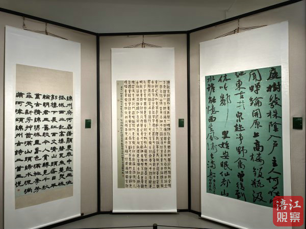 當(dāng)天上午10時(shí),在簡短的展覽開幕式后,到場的書法愛好者有序進(jìn)入展廳,一幅幅風(fēng)格不同的書法作品吸引了大家的關(guān)注。