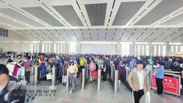 鐵路客運方面,綿陽火車站開行客運列車1027趟次,其中,動車879趟次,普列148趟次,共發(fā)送旅客20.9萬人次,比2023年同期增加17%。其中,5月1日單日發(fā)送旅客52933人次,為單日最高。
