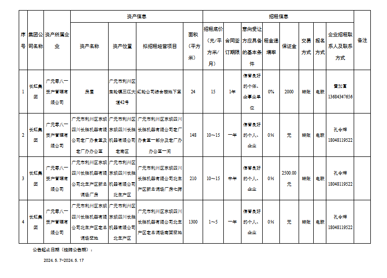 廣元零八一資產(chǎn)管理有限公司資產(chǎn)出租公告