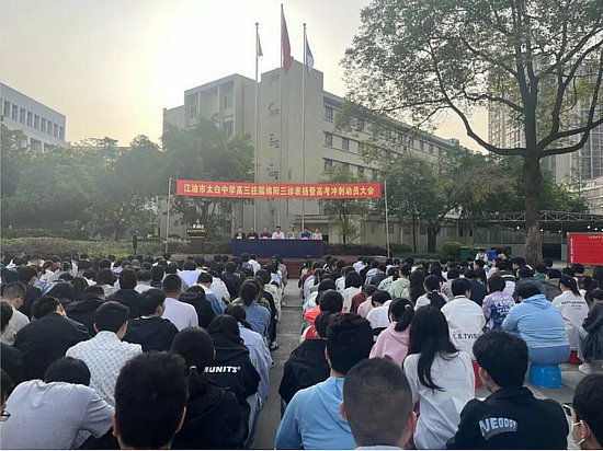 綿陽新聞網(wǎng)訊 為了表揚優(yōu)秀、鼓舞斗志,5月6日上午,江油市太白中學(xué)隆重舉行了高三往屆綿陽“三診”表揚暨高考沖刺動員大會。該校黨委書記張衡及高三往屆全體師生參會,大會由馮媛老師主持。