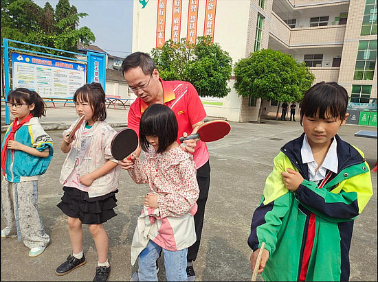 年5月9日,該校開(kāi)展了“銀球飛旋 快樂(lè)童年”乒乓球特色工作活動(dòng)?;顒?dòng)中,該校黨支部書(shū)記、校長(zhǎng)彭真致歡迎詞。邀請(qǐng)了安州區(qū)業(yè)余體校黨支部書(shū)記、校長(zhǎng),國(guó)家級(jí)社會(huì)體育指導(dǎo)員,安州區(qū)乒乓球資深教練劉英,安州區(qū)乒乓球比賽團(tuán)體冠軍得主,安州區(qū)優(yōu)秀乒乓球運(yùn)動(dòng)員張義兵、賀煒、王翠香、邱弟軍,對(duì)全校師生進(jìn)行了一堂生動(dòng)而專(zhuān)業(yè)的乒乓球教學(xué)課。教練員們針對(duì)學(xué)校乒乓球教學(xué)需要,分別到各個(gè)班級(jí),重點(diǎn)講解了乒乓球運(yùn)動(dòng)的意義、乒乓球教學(xué)基礎(chǔ)以及乒乓球比賽規(guī)則,手把手教學(xué)生打球,指導(dǎo)學(xué)生基本動(dòng)作,和孩子們交流乒乓球運(yùn)動(dòng)的心理體驗(yàn),受到孩子們的熱烈歡迎。