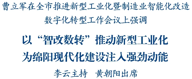 5月10日,全市推進(jìn)新型工業(yè)化暨制造業(yè)智能化改造數(shù)字化轉(zhuǎn)型工作會(huì)議召開,省委常委、市委書記曹立軍出席會(huì)議并講話。他強(qiáng)調(diào),要深入貫徹習(xí)近平總書記關(guān)于新型工業(yè)化的重要論述和對(duì)四川工作系列重要指示精神,認(rèn)真落實(shí)全國新型工業(yè)化推進(jìn)大會(huì)和全省推進(jìn)新型工業(yè)化暨制造業(yè)智能化改造數(shù)字化轉(zhuǎn)型工作會(huì)議部署要求,大力實(shí)施產(chǎn)業(yè)強(qiáng)市戰(zhàn)略,加快“智改數(shù)轉(zhuǎn)”步伐,聚力推動(dòng)新型工業(yè)化高質(zhì)量發(fā)展,為綿陽現(xiàn)代化建設(shè)注入強(qiáng)勁動(dòng)能。