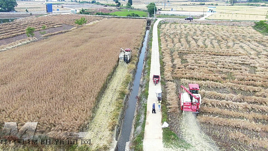 “我種了400畝菜籽,現(xiàn)在都是機械化收割,省時省工又省力,我們請了兩臺收割機,四天就能收完,菜籽從種到收,都有農(nóng)業(yè)部門的技術(shù)指導(dǎo),采取科學(xué)化管理來保證產(chǎn)量,今年菜籽畝產(chǎn)在215公斤左右。”趙玉芳說。