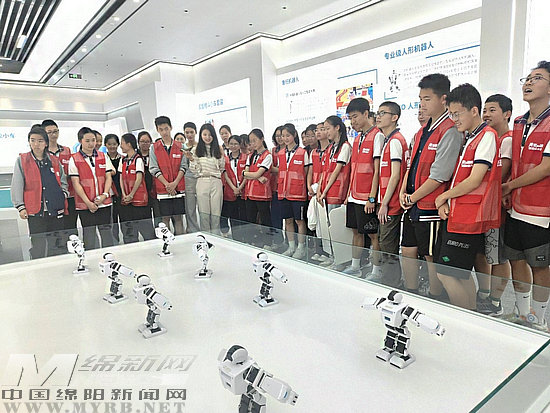 師生們?cè)诰d陽(yáng)科技城新區(qū)機(jī)器人創(chuàng)新館參觀