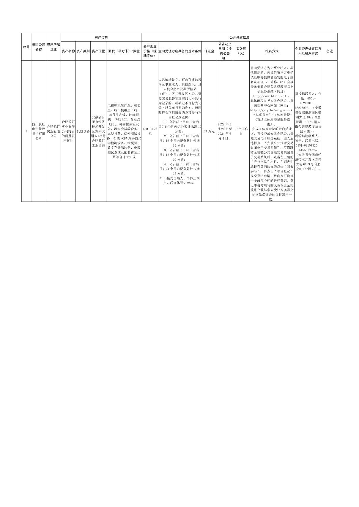 合肥長虹實(shí)業(yè)有限公司閑置資產(chǎn)處置公告
