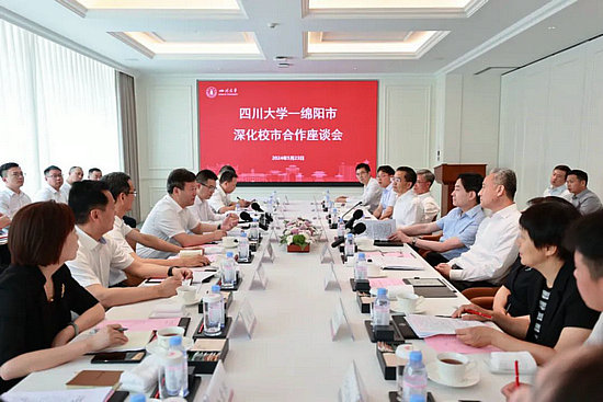 甘霖對(duì)綿陽(yáng)市考察團(tuán)一行表示歡迎,感謝綿陽(yáng)一直以來(lái)對(duì)四川大學(xué)發(fā)展的支持,對(duì)綿陽(yáng)經(jīng)濟(jì)社會(huì)發(fā)展取得的顯著成就表示祝賀。他說(shuō),綿陽(yáng)是中國(guó)唯一科技城、四川第二大經(jīng)濟(jì)體,科技資源富集、產(chǎn)業(yè)基礎(chǔ)堅(jiān)實(shí),在全國(guó)、全省發(fā)展大局中具有重要戰(zhàn)略地位。近年來(lái)綿陽(yáng)堅(jiān)持創(chuàng)新引領(lǐng)、實(shí)施“五市戰(zhàn)略”,加快建設(shè)中國(guó)科技城,全力打造成渝副中心,推動(dòng)改革發(fā)展各項(xiàng)事業(yè)取得新成效,呈現(xiàn)蓬勃發(fā)展良好態(tài)勢(shì)。四川大學(xué)與綿陽(yáng)市同處西部和四川,面臨著落實(shí)國(guó)省戰(zhàn)略部署的機(jī)遇,肩負(fù)著共同的時(shí)代責(zé)任。希望雙方以此次座談會(huì)為契機(jī),進(jìn)一步完善常態(tài)化交流合作機(jī)制,持續(xù)聚焦國(guó)家和區(qū)域戰(zhàn)略需求,充分發(fā)揮各自特色優(yōu)勢(shì),圍繞科技創(chuàng)新、人才引育、成果轉(zhuǎn)化、產(chǎn)業(yè)發(fā)展等方面,精心謀劃新一輪合作,努力結(jié)出更多碩果。