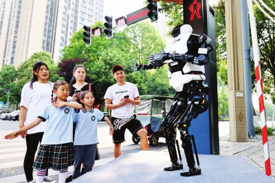 綿陽科技城新區(qū)園藝街與九洲大道交會處,說著一口四川方言的機(jī)器人化身交通引導(dǎo)員,倡導(dǎo)市民文明出行。