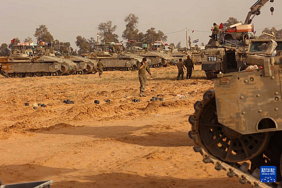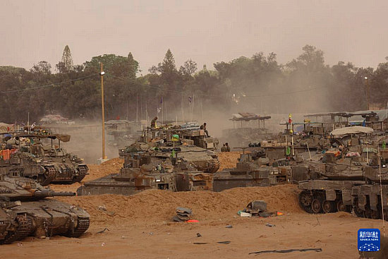 這是5月27日在以色列與加沙邊境以方一側(cè)拍攝的以軍部隊。新華社發(fā)(吉爾·科恩·馬根攝)
