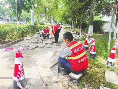 作為城市“動(dòng)脈”,道路狀況關(guān)系著市民的出行安全,也是展示城市形象的重要窗口。“梓南路人行道地磚3處破損、2處松動(dòng),請(qǐng)馬上過來修補(bǔ)。”5月28日一大早,市政管護(hù)組負(fù)責(zé)人劉忠平在接到問題反映后,立馬聯(lián)系維護(hù)人員前往進(jìn)行維修。
