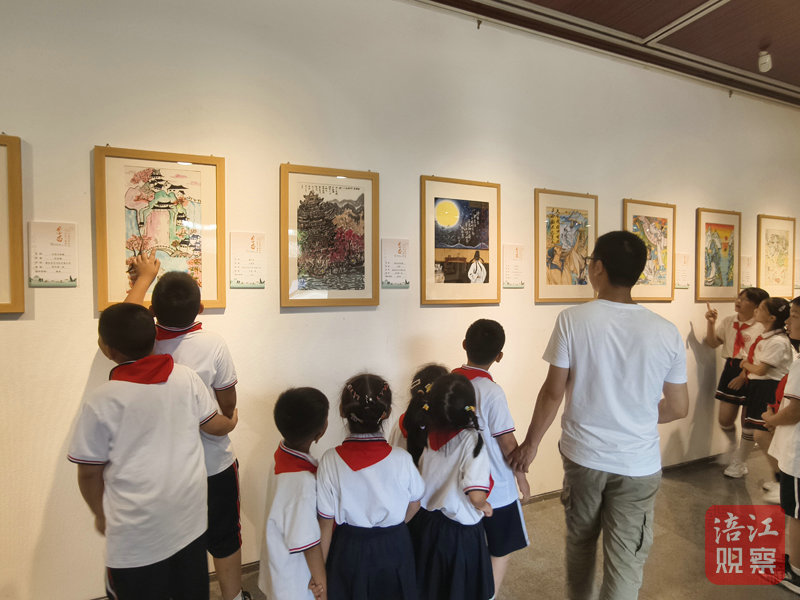 聯(lián)展以李白留川渝詩意為主題,通過川渝兩地兒童的思維與視覺,進行詩意畫創(chuàng)作與表達。江油市勝利街小學一年級七班的楊翊宸告訴記者,“我的兒童畫被這次畫展選上了,我非常高興。因為李白是青蓮人,所以我這次作品的主題是荷花。我在李白的故鄉(xiāng)江油生長,我感到很高興、很自豪,我以后也會更加努力學習畫畫。”