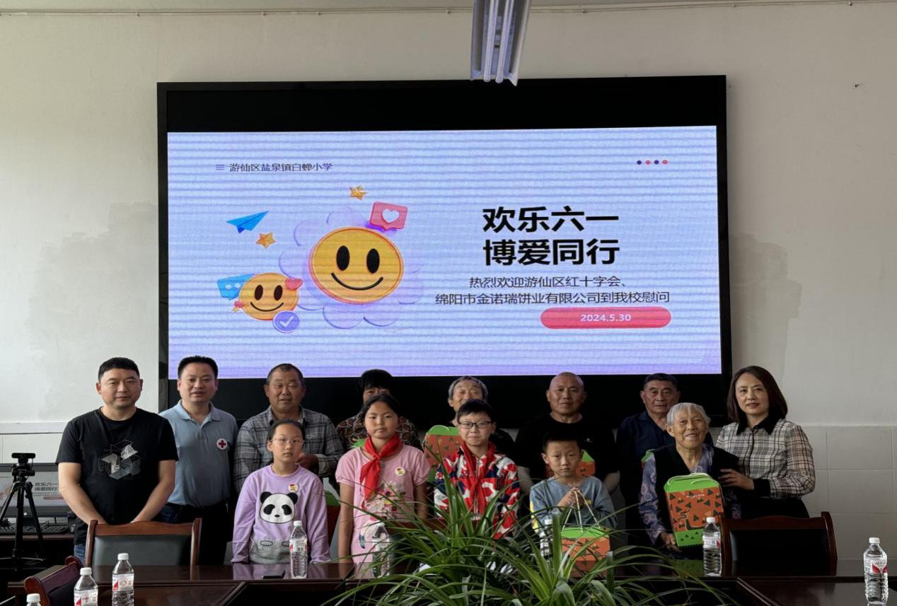 2024年5月30日上午,金諾瑞餅業(yè)有限公司和游仙區(qū)紅十字會攜手走進了白蟬小學(xué),開展了以“歡樂六一,博愛同行”為主題的慰問活動。金諾瑞餅業(yè)經(jīng)理張曉燕、游仙區(qū)紅十字會黨組成員王麗峰親臨現(xiàn)場,白蟬小學(xué)高世偉校長出席活動。