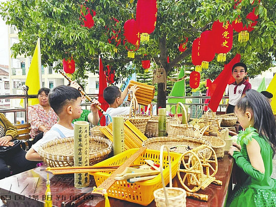 在梓潼縣黎雅小學(xué),“竹編”作品展示活動吸引了眾多學(xué)生觀看。“今天我編織了一個簡易的小竹簍,特別有成就感。我非常喜愛竹編這門藝術(shù),它給我?guī)砹丝鞓贰?rdquo;黎雅小學(xué)學(xué)生石浩宇說。