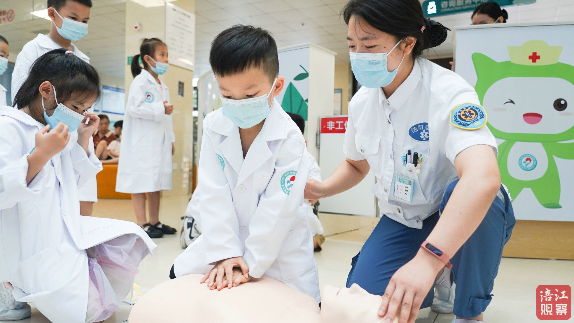 體驗(yàn)為同伴檢查視力,透過(guò)顯微鏡了解微觀世界,親手操作部分簡(jiǎn)單醫(yī)療器械,在模擬場(chǎng)景下體驗(yàn)心肺復(fù)蘇術(shù)(CPR)和海姆立克法等常見緊急救護(hù)措施……一場(chǎng)活動(dòng)下來(lái),“小醫(yī)生”們?cè)诨?dòng)和體驗(yàn)中感受到了醫(yī)生的日常工作,學(xué)習(xí)到了基礎(chǔ)健康知識(shí)。他們紛紛表示,“以后長(zhǎng)大了我也要當(dāng)醫(yī)生”“我也想治病救人”。
