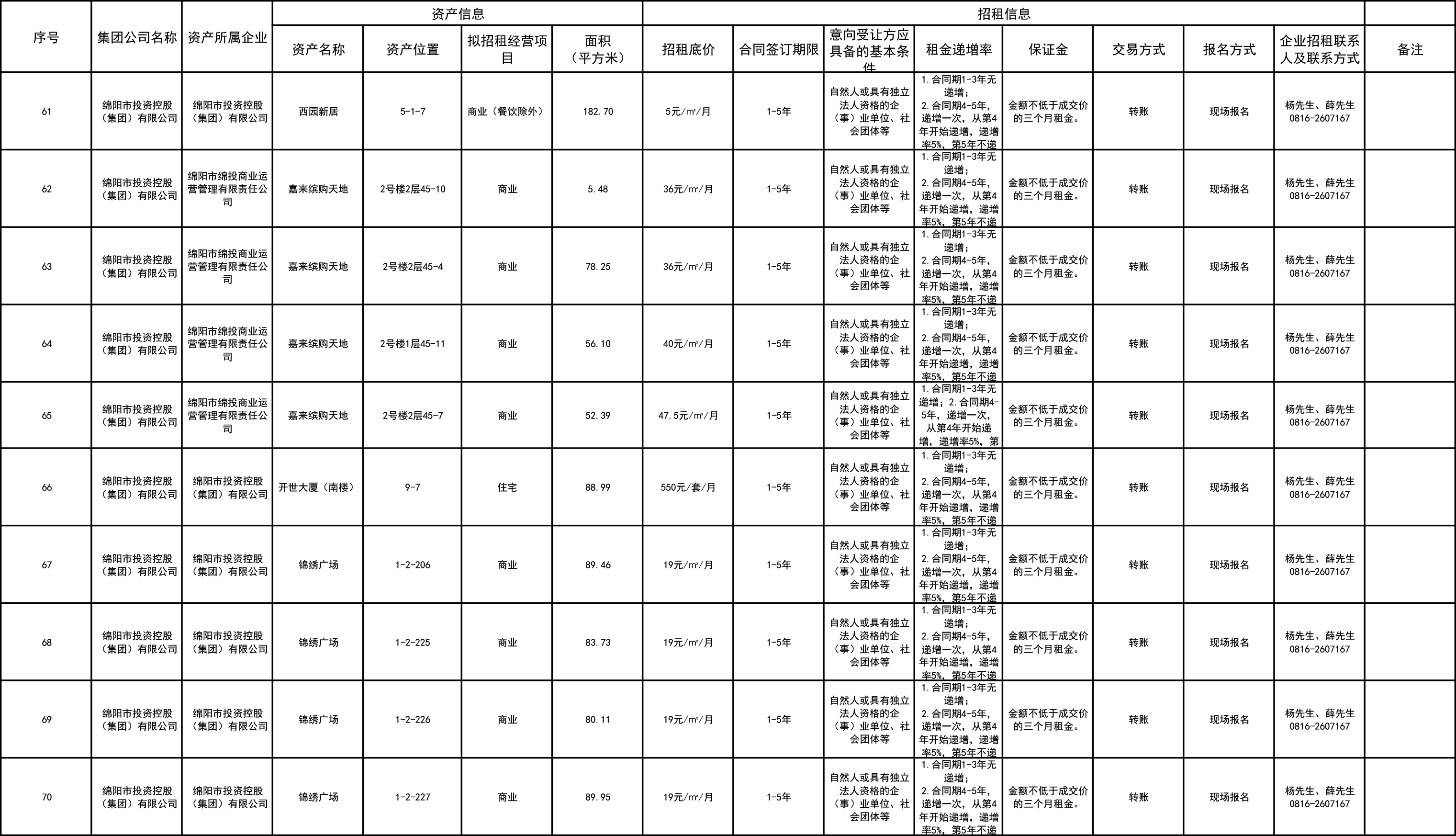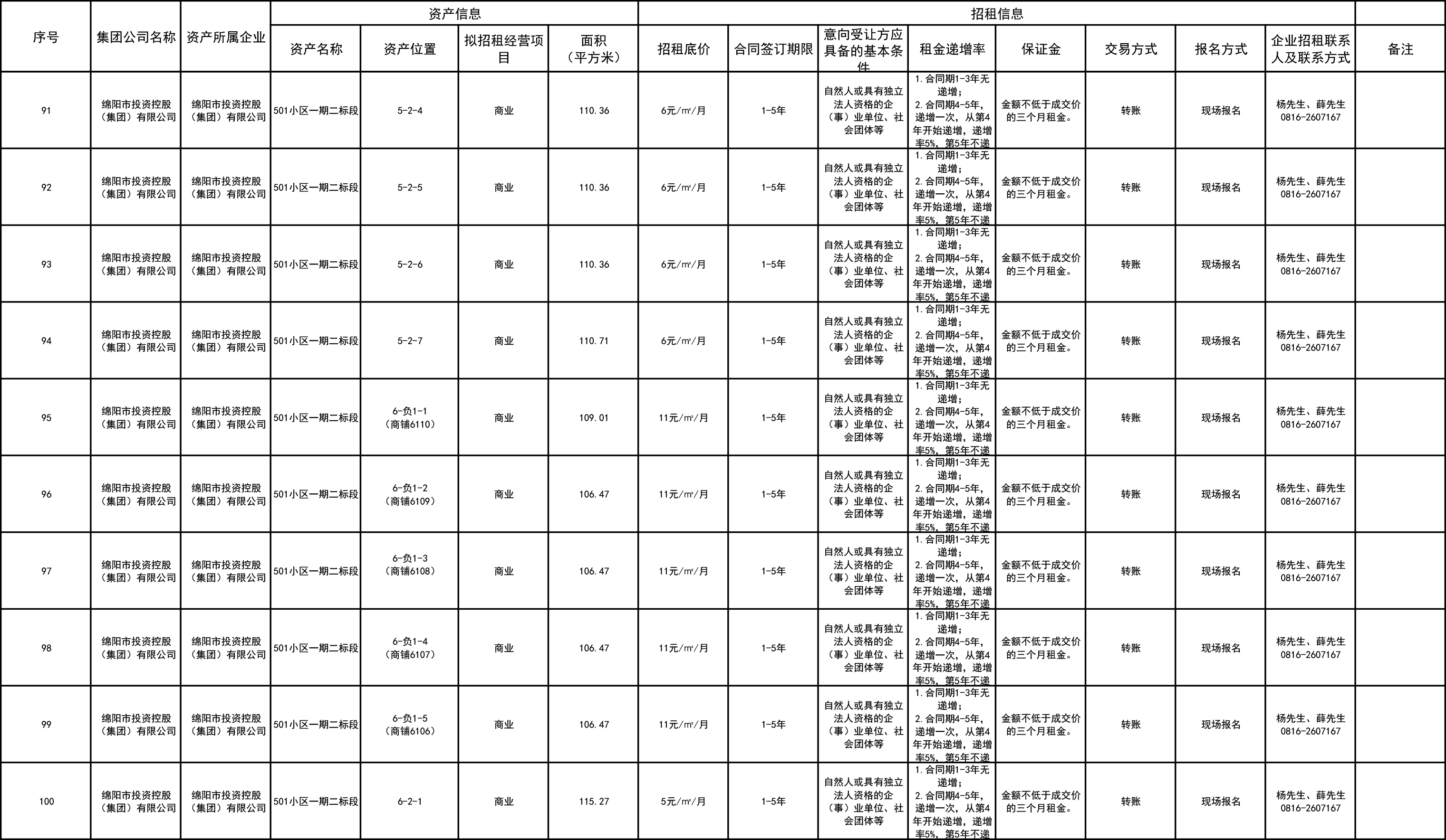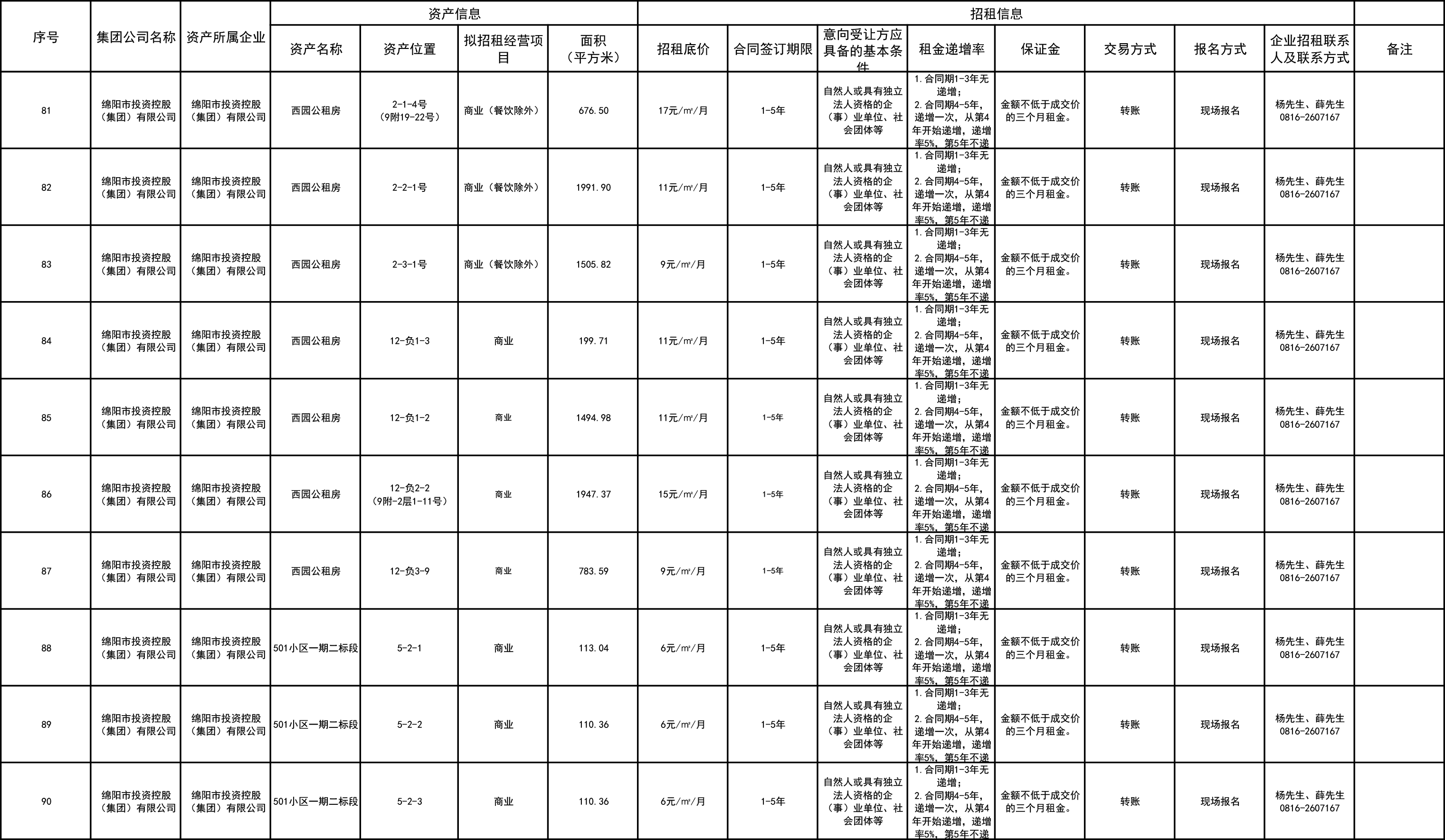 綿陽(yáng)市綿投商業(yè)運(yùn)營(yíng)管理有限責(zé)任公司資產(chǎn)出租公告