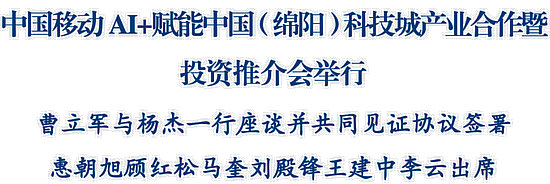 綿陽新聞網(wǎng)訊 6月20日,中國(guó)移動(dòng)AI+賦能中國(guó)(綿陽)科技城產(chǎn)業(yè)合作暨投資推介會(huì)舉行。會(huì)前,省委常委、市委書記曹立軍與中國(guó)移動(dòng)集團(tuán)董事長(zhǎng)楊杰一行座談,并共同見證協(xié)議簽署。