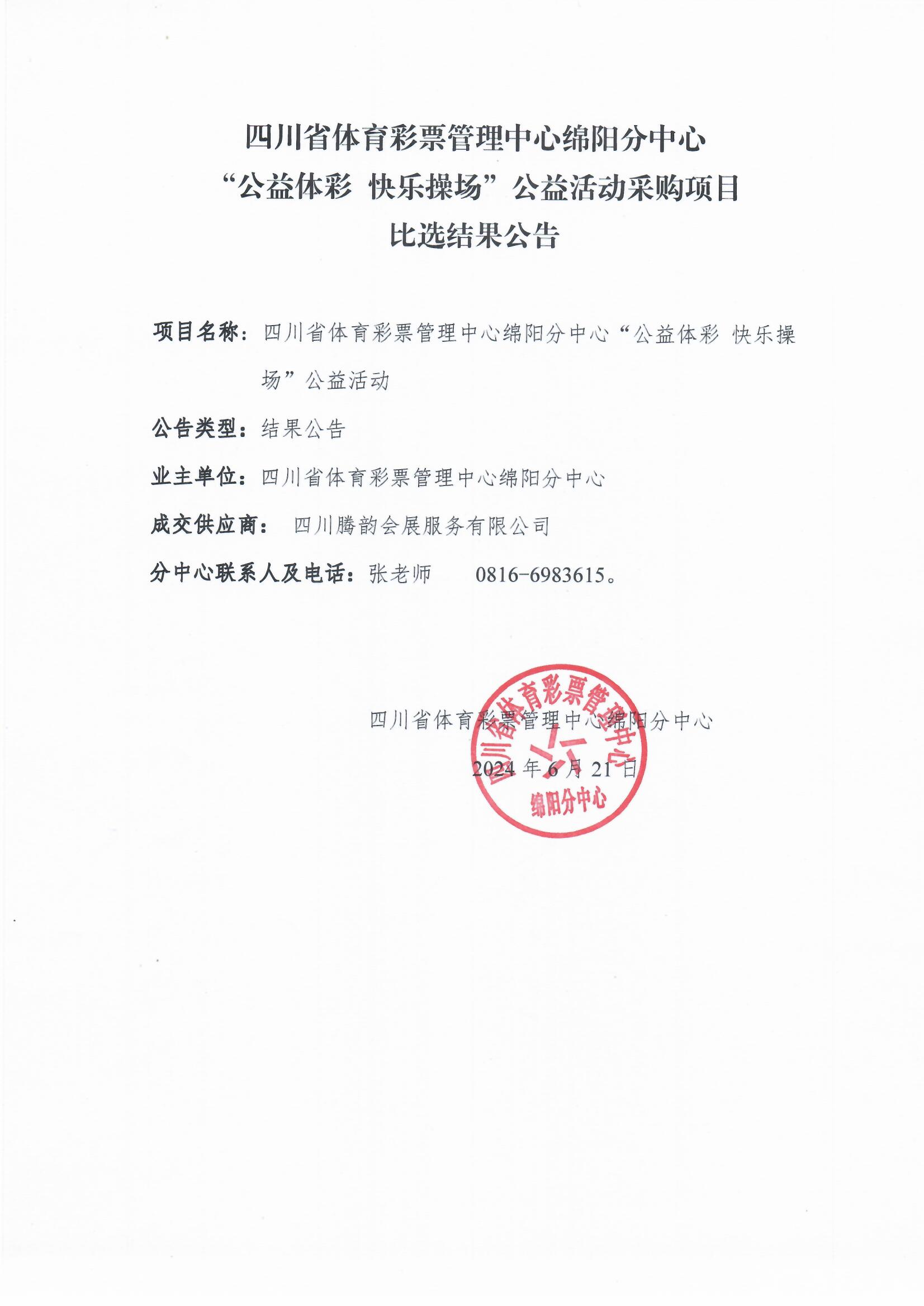 四川省體育彩票管理中心綿陽分中心“公益體彩快樂操場”公益活動采購項目比選結果公告
