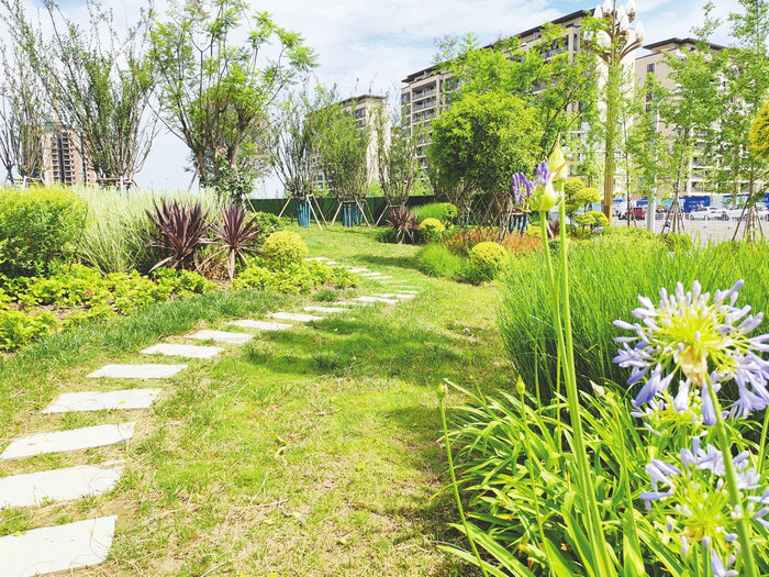 恒昌路口袋公園總面積約3700平方米,總投資約140萬元。按照喬灌花草相結(jié)合的原則,用叢生多頭藍(lán)花楹、大型叢生垂絲海棠等異形喬木,結(jié)合組團(tuán)花境組成觀賞性較高的綠化景觀,同時鋪裝草皮,安裝汀步,添置休閑座椅,供市民休閑游賞。