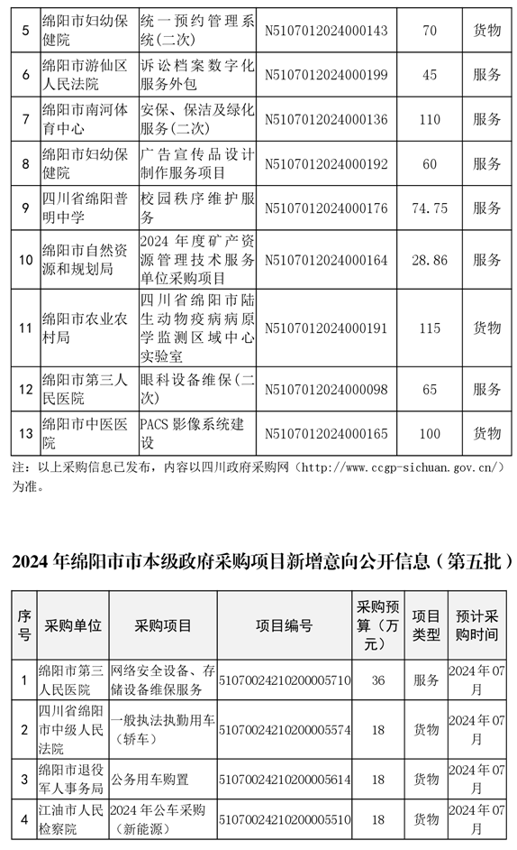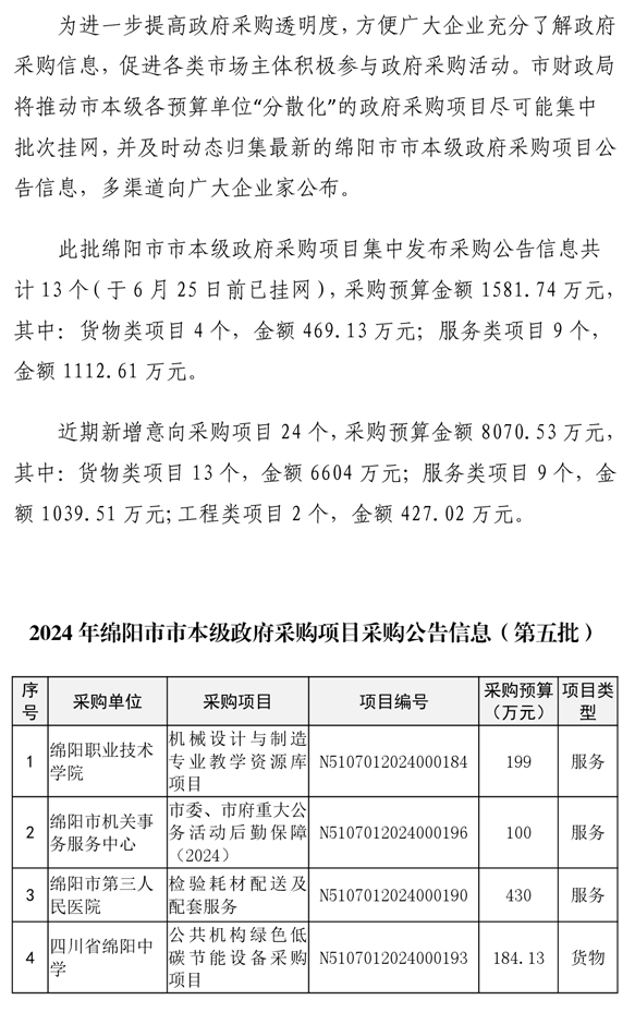 37個政府采購項目的“機會清單” 出爐!(2024年第五波)綿陽市市本級政府采購項目信息動態(tài)(2024年第五批)