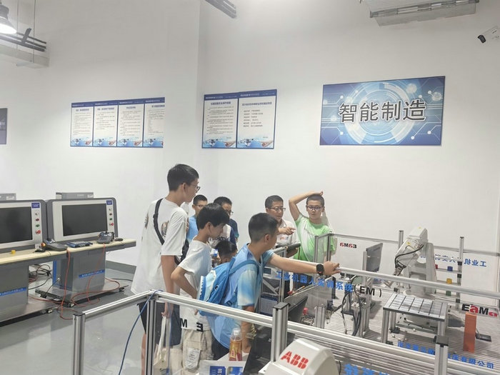 綿陽新聞網(wǎng)訊 “哇,這個機器人好酷!”“我要做一個蛋糕帶回家”……7月7日,在市公共實訓(xùn)基地,來自東辰小學(xué)的學(xué)生們體驗著西式面點、光機電一體化PLC和工業(yè)機器人等工種,不時發(fā)出贊嘆(如圖)。