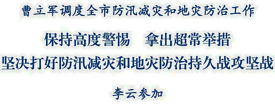 曹立軍指出,7月以來,我市已經(jīng)歷多輪強降水天氣,降水范圍廣、強度大、持續(xù)時間長,已出現(xiàn)今年首個暴雨紅色預警信號和地災(zāi)橙色預警,險情發(fā)生率增加,致災(zāi)風險較高,防汛減災(zāi)和地災(zāi)防治工作已進入到吃勁、緊要的關(guān)頭。全市各地各有關(guān)部門務(wù)必要進一步提高思想認識,充分認清當前防汛減災(zāi)和地災(zāi)防治工作的極端復雜性、嚴峻性、艱巨性,把保障人民群眾生命安全擺在首要位置,堅決克服厭戰(zhàn)情緒、僥幸心理,把困難和風險估計得更加充分一些,把對策和舉措思考得更加周全一些,把各項部署抓實抓細抓到位,努力在大戰(zhàn)大考中交出一份合格答卷。要進一步強化指揮調(diào)度,市防汛、地災(zāi)和應(yīng)急指揮部要堅持每日會商調(diào)度,堅持防汛、地災(zāi)、應(yīng)急一體化研判、一體化調(diào)度、一體化落實;分管市領(lǐng)導要落實好包縣(市、區(qū))防汛減災(zāi)聯(lián)系機制;各縣(市、區(qū))主要負責同志要坐鎮(zhèn)一線指揮,做到在崗、在位、在狀態(tài),堅決打好防汛減災(zāi)“主動仗”。要進一步壓實工作責任,健全“橫向到邊、縱向到底、不留死角”的防災(zāi)減災(zāi)救災(zāi)責任體系,嚴格落實值班值守制度,加強督導檢查,加大通報力度,確保各項防災(zāi)減災(zāi)措施落實到終端末梢、落細到最小單元。