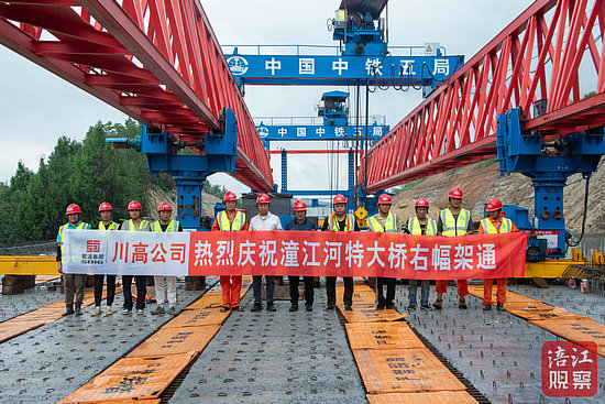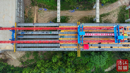 綿陽新聞網(wǎng)訊 7月20日,G5京昆高速廣元至綿陽段擴(kuò)容工程全線控制性工程之一潼江河特大橋單幅順利架通,為全線后續(xù)施工奠定了堅實基礎(chǔ)。