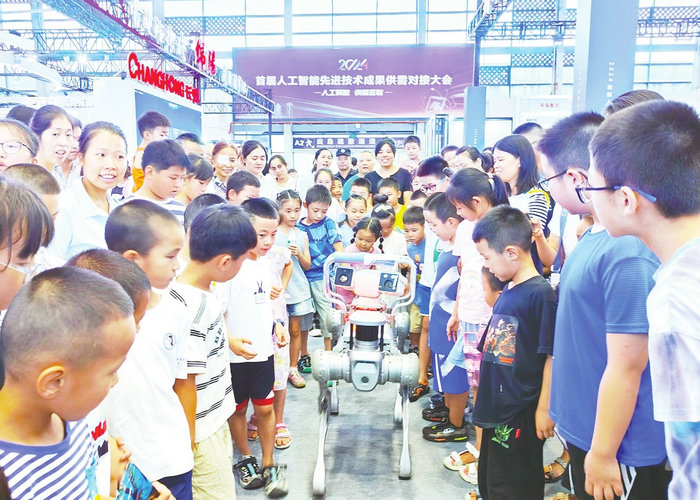 人工智能創(chuàng)新成果展吸引眾多孩子和家長(zhǎng)圍觀體驗(yàn)