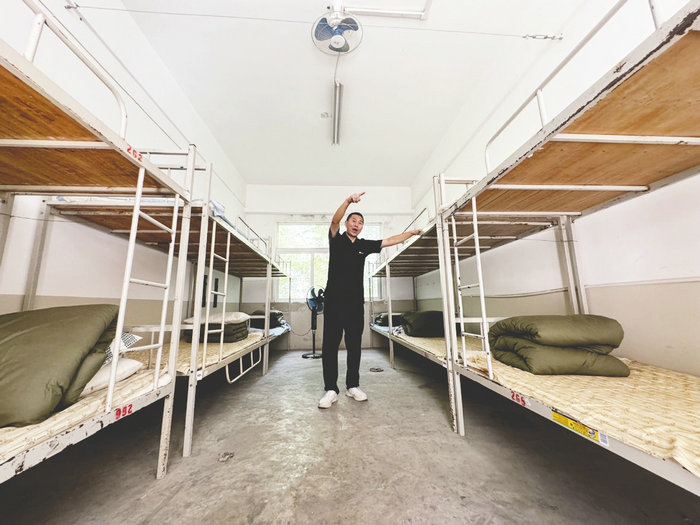 陳家壩中學(xué)安置點(diǎn),龍灣村村民母志明正在操場上幫安置點(diǎn)群眾曬被子。一周前,他收到橙色預(yù)警短信沒多久,村干部便派車把他和鄰居們接了過來。他領(lǐng)著記者參觀臨時(shí)家園。一樓門口是用餐區(qū),三個(gè)村最高峰轉(zhuǎn)來70余人,當(dāng)?shù)卣峁┟酌嬗腿?,三個(gè)村輪流派出廚師烹飪。角落里擺放著5臺(tái)動(dòng)感單車供群眾健身。二樓住宿男女分區(qū),配備了電扇、蚊香、消防設(shè)施等。安置點(diǎn)還配有電腦,通過攝像頭可實(shí)時(shí)查看村里隱患點(diǎn)的最新情況。7月26日,隨著地災(zāi)風(fēng)險(xiǎn)預(yù)警解除,陳家壩中學(xué)安置點(diǎn)的村民也陸續(xù)返回了家園。