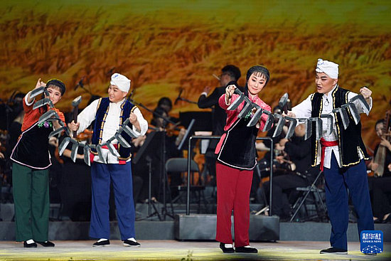 7月30日,演員表演眉戶《十二把鐮刀》。