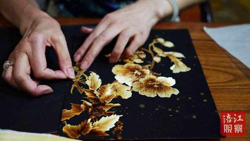 “制作一幅精致的麥稈畫,過程精細(xì)而繁瑣。首先要選材,依次是漂白、構(gòu)圖、剪裁、粘貼、燙染等30多道工序。”龍怡珍說,在所有工序中,最難的就是燙。烙鐵需要通過溫度、力度的精準(zhǔn)把控來刻畫線條、堆砌細(xì)節(jié),在圖形上燙出深淺不一的顏色,形成明暗對比。