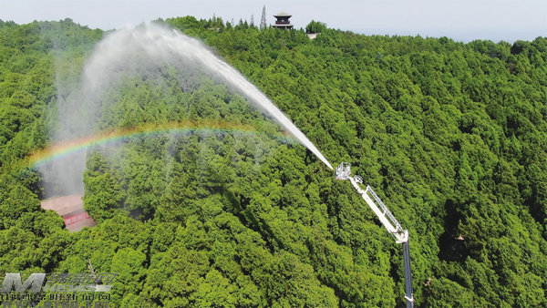 綿陽(yáng)新聞網(wǎng)訊 灑水降溫“向云端”,高度45米,射程100米!8月14日,梓潼七曲山專(zhuān)職消防救援站通過(guò)登高平臺(tái)消防車(chē)對(duì)翠云廊古柏降溫增濕。
