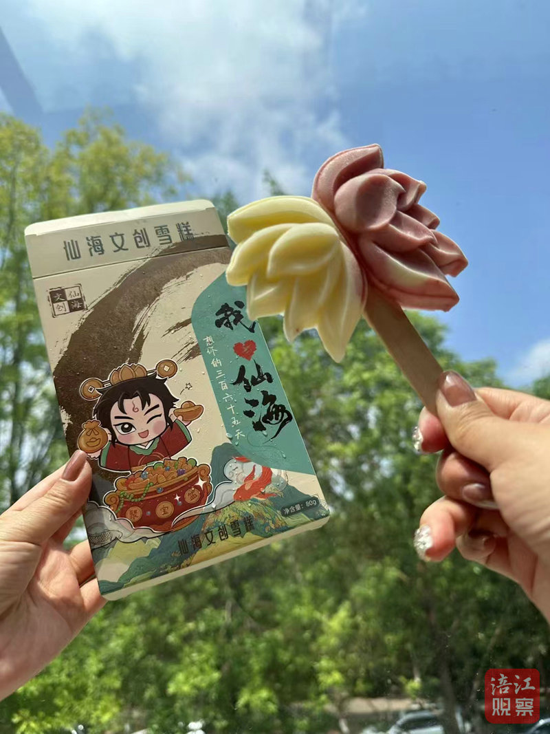 據(jù)了解,仙海文創(chuàng)雪糕通過(guò)專人設(shè)計(jì),結(jié)合了“小沉香”形象以及仙海文化旅游特色,承載著仙海的歷史文化,使它不僅能消暑解渴,還成為一款打卡、分享神器,能夠?yàn)橛慰吞峁└?ldquo;增值”體驗(yàn)。美好的風(fēng)景配上美味的雪糕定格在美麗的照片里,讓游玩仙海之美的體驗(yàn)更多元、更深刻。