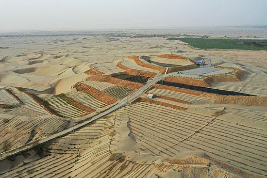 在“三北”工程攻堅(jiān)戰(zhàn)中,新疆出臺(tái)《新疆塔克拉瑪干沙漠邊緣阻擊戰(zhàn)總體方案》和《支持塔克拉瑪干沙漠邊緣阻擊戰(zhàn)的九條措施》,系統(tǒng)集成科技、政策、資金、產(chǎn)業(yè)等資源,初步探索出一條生態(tài)建設(shè)產(chǎn)業(yè)化道路,推動(dòng)防沙治沙面積成倍增長(zhǎng)。