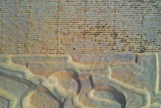 這是6月15日在新疆和田地區(qū)于田縣拍攝的闐東防沙治沙綜合示范區(qū)沙漠邊緣(無(wú)人機(jī)照片)。新華社記者丁磊 攝
