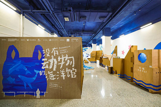 隨著全球經(jīng)濟(jì)的發(fā)展和人類活動(dòng)的不斷增加,海洋污染問題日益嚴(yán)峻,塑料垃圾在海洋中漂浮累積,形成觸目驚心的“塑料大陸”;海洋酸化、海水溫度升高等問題更是對(duì)海洋生態(tài)構(gòu)成了長期威脅,海洋生態(tài)保護(hù)迫在眉睫。基于此,策展人韓李李在大梅沙地鐵站內(nèi)舉辦了一場(chǎng)“沒有動(dòng)物的海洋館”公益展覽。展覽以海洋保護(hù)和低碳生活為主題,通過“大海里現(xiàn)在有什么”“遠(yuǎn)方的哭聲并不遙遠(yuǎn)”“我們能做什么”,讓觀眾意識(shí)到,我們?nèi)粘I钏a(chǎn)生的垃圾對(duì)于海洋環(huán)境和海洋生物的破環(huán),而我們可以通過使用環(huán)保產(chǎn)品減少垃圾產(chǎn)生,保護(hù)海洋生態(tài)。