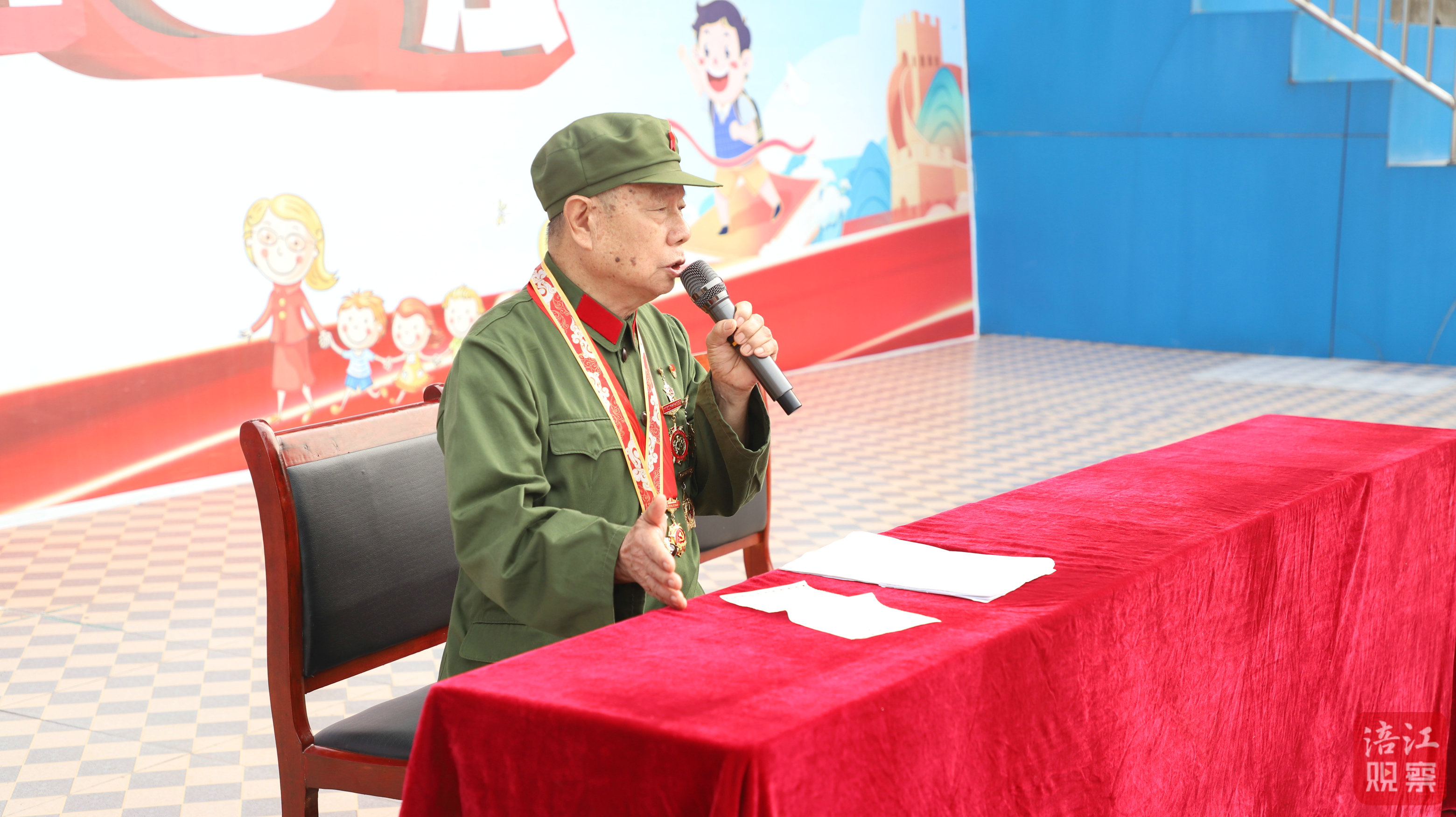 “我看到他倒下了,我卻不能去救他啊,因?yàn)槲业娜蝿?wù)是炸碉堡......”活動現(xiàn)場,綿陽市級紅色宣講員、一等功臣樊峪榕進(jìn)行了紅色宣講。他深情地講述了至今難忘的那激情燃燒歲月血與火的故事,那一個又一個英勇而驚險的戰(zhàn)斗場面仿佛就在眼前,無一不讓孩子們?yōu)橹畡尤?,激勵著大家珍惜?dāng)下美好光陰,學(xué)好知識、練就本領(lǐng),努力成為國家之棟梁。