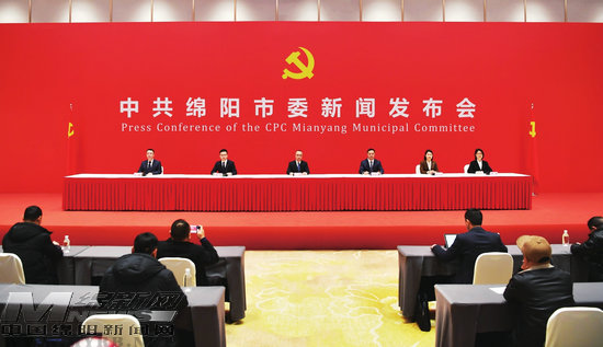 1月1日,中共綿陽市委八屆九次全會新聞發(fā)布會現(xiàn)場。(記者 王勇 攝)
