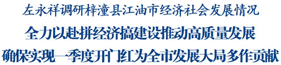 調(diào)研中,左永祥聽取了兩縣(市)貫徹落實(shí)中央和省委經(jīng)濟(jì)工作會(huì)議精神、市委八屆九次全會(huì)精神情況,以及今年工作打算等情況匯報(bào),對(duì)取得的工作成效給予肯定。他強(qiáng)調(diào),梓潼、江油發(fā)展基礎(chǔ)堅(jiān)實(shí)、勢(shì)頭良好,要繼續(xù)保持專注發(fā)展戰(zhàn)略定力,細(xì)化對(duì)接落實(shí)國省一攬子增量政策,以更加務(wù)實(shí)舉措鍛長板揚(yáng)優(yōu)勢(shì)、補(bǔ)短板趕進(jìn)度,保持“開局就發(fā)力、起步就沖刺”的勁頭,全力抓好一季度經(jīng)濟(jì)工作,為全市發(fā)展大局貢獻(xiàn)更多力量。要立足資源稟賦和產(chǎn)業(yè)基礎(chǔ),大力推進(jìn)新型工業(yè)化,把發(fā)展特色優(yōu)勢(shì)產(chǎn)業(yè)和戰(zhàn)略性新興產(chǎn)業(yè)作為主攻方向,加快推進(jìn)“智改數(shù)轉(zhuǎn)”步伐,因地制宜加快發(fā)展新質(zhì)生產(chǎn)力,推進(jìn)產(chǎn)業(yè)向高端化、智能化、綠色化發(fā)展。要堅(jiān)持以項(xiàng)目為中心組織經(jīng)濟(jì)工作,積極開展精準(zhǔn)專業(yè)招商,努力引進(jìn)一批附加值高、帶動(dòng)力強(qiáng)、經(jīng)濟(jì)效益好的優(yōu)質(zhì)項(xiàng)目,加快塑造高質(zhì)量發(fā)展新動(dòng)能新優(yōu)勢(shì)。要以文旅助推消費(fèi)提質(zhì)升級(jí),著力打造獨(dú)具特色和標(biāo)識(shí)的文旅融合新產(chǎn)品、新服務(wù)、新業(yè)態(tài),搶抓春節(jié)假期等消費(fèi)節(jié)點(diǎn),加快研究推出重點(diǎn)領(lǐng)域促消費(fèi)刺激措施,著力營造濃厚氛圍,持續(xù)釋放消費(fèi)活力。要加快推進(jìn)以縣城為重要載體的新型城鎮(zhèn)化,推動(dòng)城鄉(xiāng)公共資源均衡高效配置,推進(jìn)城鄉(xiāng)基礎(chǔ)設(shè)施一體化,不斷提升縣城綜合承載能力和服務(wù)功能,增強(qiáng)中心鎮(zhèn)輻射帶動(dòng)力。要更好統(tǒng)籌發(fā)展和安全,抓實(shí)抓好安全生產(chǎn)、森林草原防滅火和防災(zāi)減災(zāi)工作,強(qiáng)化民生服務(wù)保障,有效化解各類矛盾糾紛和風(fēng)險(xiǎn)隱患,確保社會(huì)大局和諧穩(wěn)定。