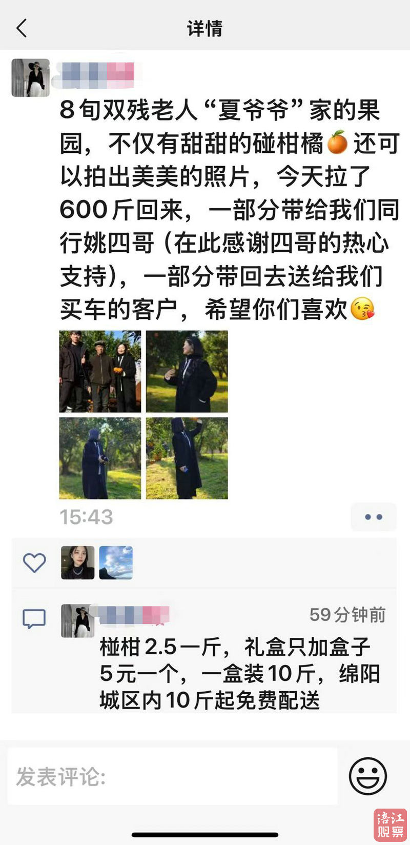 1月9日,《涪江觀察》以《橘子熟了,年近八旬大爺?shù)?萬斤柑橘盼買主!》為題,1月10日,以《后續(xù)|買主盼來啦!今天,網(wǎng)友 、愛心企業(yè)買走夏爺爺6000多斤柑橘》為題,報道了夏爺爺種的柑橘“好吃卻愁賣”的新聞后,熱心網(wǎng)友、愛心企業(yè)不僅紛紛購買夏爺爺?shù)母涕?,還利用自己的優(yōu)勢和資源爭相幫夏爺爺“帶貨”。