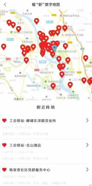 ?、俅蜷_手機(jī)“i綿陽”APP,在首頁“服務(wù)上新”板塊中點(diǎn)擊“暖‘新’地圖”即可;