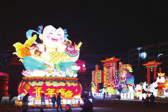 記者在現(xiàn)場看到,最引人注目的要數(shù)“芙蓉仙子”燈組,以芙蓉溪的美麗傳說為創(chuàng)意來源,用擬人化的方式展現(xiàn)出芙蓉溪的美麗,15米高的芙蓉仙子身著粉綠傳統(tǒng)服飾,宛如花中仙子降臨。周圍9個(gè)身著不同朝代服飾的小仙子相映成趣,在夜空下璀璨奪目。同時(shí),“芙蓉仙子”也是一個(gè)獨(dú)具特色的燈組,用10余萬個(gè)藥瓶捆扎組成的巨型藥瓶燈組十分驚艷,不僅環(huán)保,也展現(xiàn)出彩燈藝術(shù)中萬物皆可燈的精湛技藝。