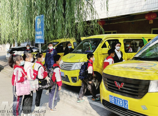 金通工程,紅領(lǐng)巾專車接送學(xué)生。