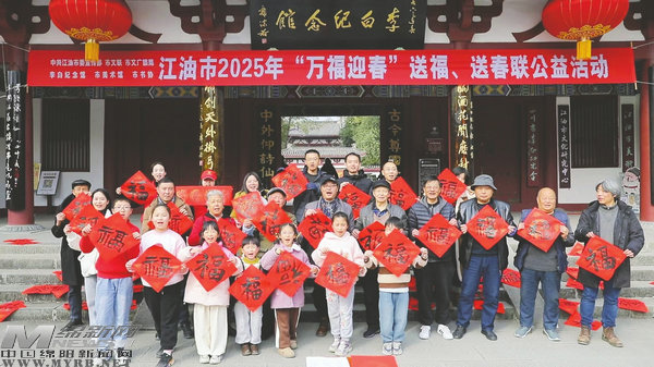 近日,綿陽書法家協(xié)會的專家以及江油市書法家協(xié)會的會員,在江油大劇院、李白紀(jì)念館為市民、游客寫春聯(lián)送祝福。書法家們拿出早已準(zhǔn)備好的筆墨、紅紙,揮毫潑墨,一副副寓意吉祥的春聯(lián)和“福”字躍然紙上,簡單的文字承載著人們對新年的美好祝愿,為即將來臨的春節(jié)增添了濃濃的喜慶氣氛。