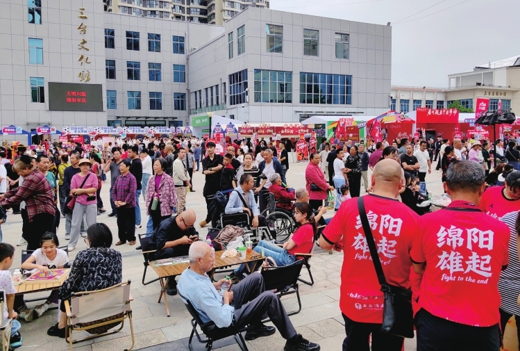 記者在現(xiàn)場看到,消費(fèi)集市人流如織,江油肥腸、北川臘肉、梓潼片粉的香氣在空氣中交織,平武綠茶在沸水中舒展,安州安橙吸引食客駐足,富臨、凱瑞等房企展銷也人氣頗旺,為觀眾提供安居綿陽的置業(yè)選擇。同時(shí),綿陽各縣(市、區(qū))特色啦啦隊(duì)輪番上陣表演,勁歌熱舞嗨動(dòng)全場。