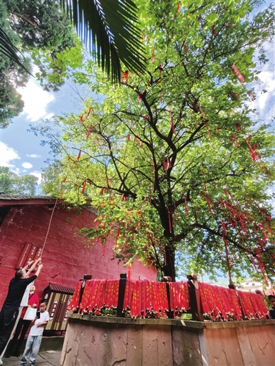文昌洞經(jīng)古樂是國家級(jí)非物質(zhì)文化遺產(chǎn),“雙節(jié)”期間,樂團(tuán)定時(shí)為各地游客演奏文昌洞經(jīng)古樂經(jīng)典曲目。“趁著國慶長假,來看看古柏樹、古建筑,拋紅繩的時(shí)候許下事業(yè)有成,國泰民安的心愿,既有趣又有儀式感,特別開心。”游客許嘉豪說。