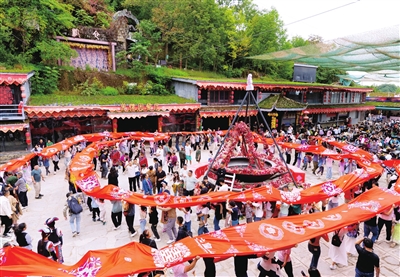 “早上還在欣賞九寨溝的山水,中午就在這里感受濃郁的羌族風(fēng)情,這樣的行程安排太充實(shí)了。”10月5日,來自重慶的游客張新望一家在北川九皇山景區(qū)羌情園,對(duì)一場傳統(tǒng)羌族婚禮表演贊不絕口。