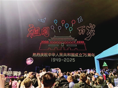 無人機(jī)+文藝匯演+美食市集,不僅讓在場群眾享受到了一場豐富的視覺盛宴,也將節(jié)日的氛圍感直接拉滿。“我們祖國越來越強(qiáng)大,這樣的慶?;顒?dòng)太有意義。”市民王女士感嘆,在國慶這一天,帶著孩子看傳統(tǒng)文化與現(xiàn)代科技交融,是最好的愛國教育。