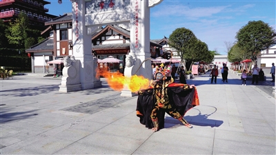 在三臺(tái)縣潼川古城,全民K歌、川劇變臉、廣場舞聯(lián)誼等輪番登場。護(hù)城河廣場歌聲飛揚(yáng),梓州渡廣場鼓樂鏗鏘,一場《滾燈》表演引得觀眾連連喝彩。臺(tái)下,孩子們模仿舞者動(dòng)作,老人跟著紅歌節(jié)奏拍手,歡聲笑語不絕于耳。