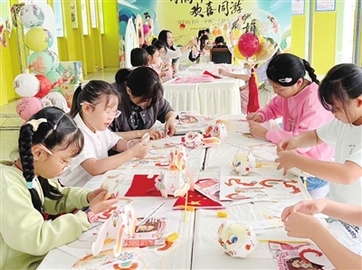 鹽亭“家國同慶·月兔呈祥”主題活動在云溪小學(xué)舉行,孩子們動手制作慶國慶手工畫。