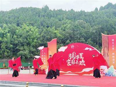 非遺是文化的活化石,也是鹽亭文旅的亮眼名片。在鳳靈街道石龍社區(qū)舉辦的“慶國慶迎中秋文藝演出”中,非遺元素成為絕對主角。活動在歡快的舞蹈《盛世歡歌》中拉開帷幕,演員們身著色彩絢麗的服裝,以靈動的舞姿展現(xiàn)祖國繁榮昌盛的景象,瞬間點燃現(xiàn)場氣氛。隨后,歌曲《我和我的祖國》深情開唱,熟悉的旋律讓在場觀眾不由自主地跟著哼唱,歌聲里滿是對祖國的熱愛與祝福。